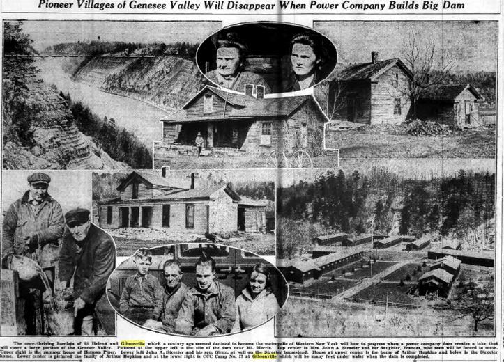 A handful of people lived in Gibsonville into the 20th century, but they eventually abandoned it as Rochester Gas & Electric bought up land in anticipation of building a dam. Most of those who stayed into the 1920s traced their lineage back to the pioneers who came in the late 1700s.