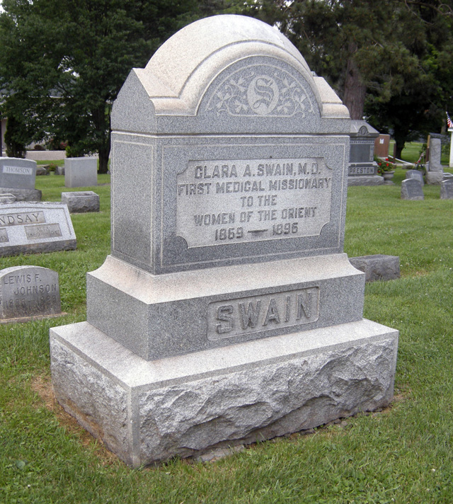 Clara was overcome by the progress of the hospital and its far-reaching work. The hospital and the staff were integral parts of the community; its reputation was held in high esteem by officials and patients. There were now several thousand converts to Christianity and thriving churches as well. When she left Bombay in March 1908, she knew this surely was her final visit to India. Clara returned to Brookside in Castile, which had been Dr. Cordelia Greene’s residence and was now Dr. Mary Greene’s home. There she finished the manuscript for A Glimpse of India, a compilation of her letters throughout her time in India. Unfortunately, her fragile health further deteriorated, and Dr. Clara Swain passed away peacefully on Christmas Day in 1910 at age 76.