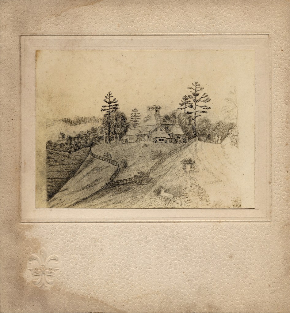Thomas Cole, the premier artist of the Hudson River School, was commissioned by friends of New York Governor William H. Seward to paint the glorious autumn colors of the river gorge and Hornby Lodge as a gift to Seward in 1841. The painting was immense—six by eight feet. The reported commission was $1,000, and in 2013, the value of the spectacular painting was over $20 million. Cole also presented the Johnsons with a pencil sketch of the house at the time; a thank you for their hospitality as he completed the commission for Seward.