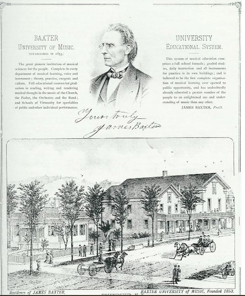 Allegany County Historical Society, James Baxter bio, Baxter University of Music