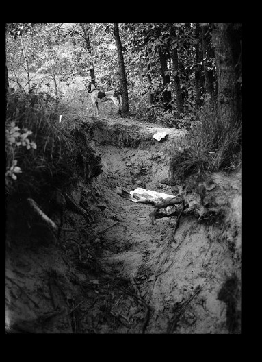 Constables Stalhan Baker and Otto Friedman carefully covered the cemetery’s outer boundaries without success, and the family endured another night of not knowing if Anna was alive or dead. On Monday morning, August 9, the constables joined Anna’s brother, John, to continue the search through the extensive undergrowth that edged the southeastern section of the cemetery down toward the Genesee River. While the constables pushed their way through bushes and brambles, a noise caught the attention of Constable Baker. Curious, the men followed the scrambling noises and found a path leading closer to the river. It was there that the marks of something being dragged over the ground were visible. The marks led them to an area where a woodchuck hole had been dug around, and as the men stood and looked at the sandy soil, they realized a grave had been recently dug. Constable Baker began digging with his bare hands, discovering that loose sod had been laid across part of the grave. Minutes later, a piece of ribbon and a piece of fabric were visible. Constable Baker stopped, telling Friedman they needed to call Sheriff Gillette and the coroner to the scene.